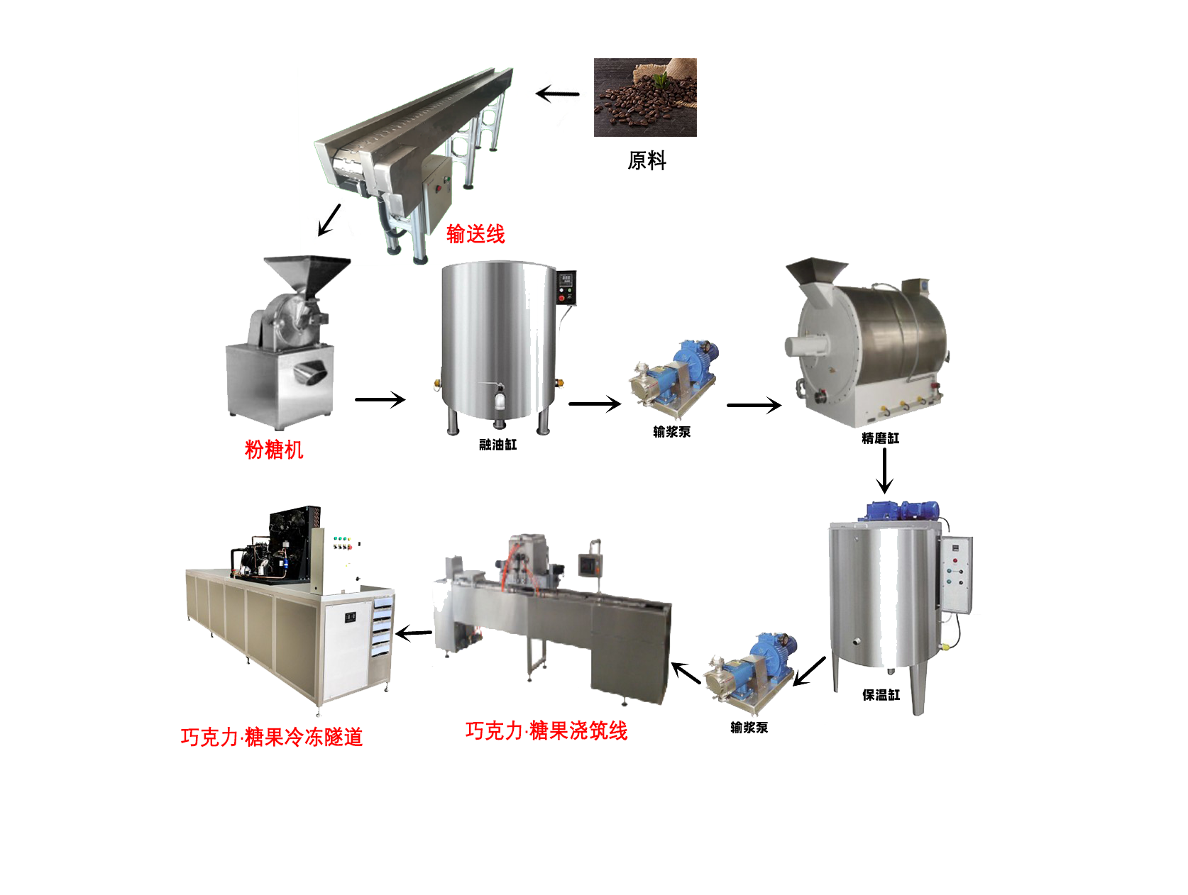? ? ? ?巧克力·糖果原料的輸送對衛(wèi)生要求較高,并且由于原料存在極小的雜質(zhì),如果輸送線間存在較大的間隙,則會導(dǎo)致輸送線的輸送出現(xiàn)問題,并且會造成不小的損失,因此使用鏈板或者輸送帶進(jìn)行原料的輸送更為合適。