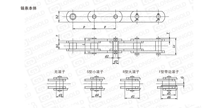 (4)滾子形式:S=小滾子   R=大滾子   B=套筒鏈   F=帶法蘭邊滾子