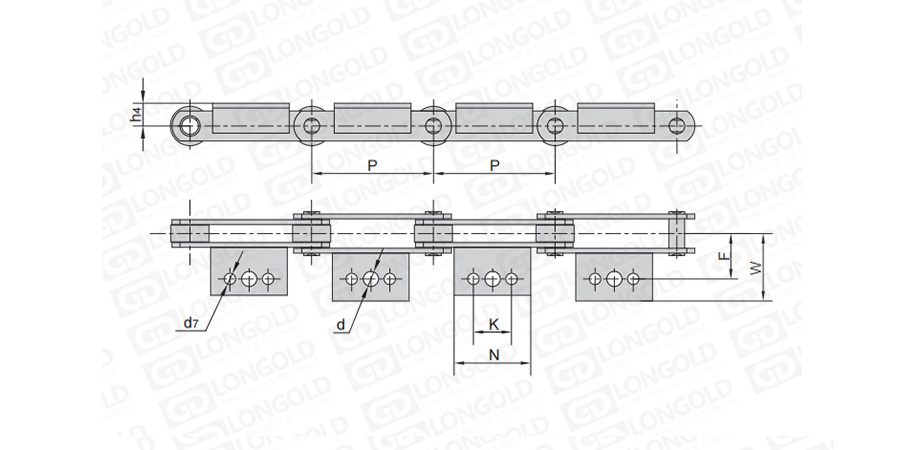 鏈條節(jié)距為非常用規(guī)格,裝配類似A1/A2或K1/K2的附件,用于物料的輸送。