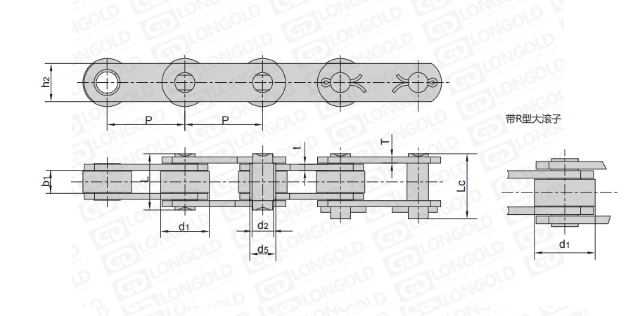 上圖為帶R滾子Z系列標(biāo)準(zhǔn)輸送鏈的結(jié)構(gòu)圖。
