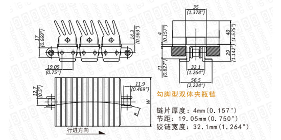 上圖為LDEW1873T系列雙體鏈的結(jié)構(gòu)圖,圖紙已標明本體尺寸。