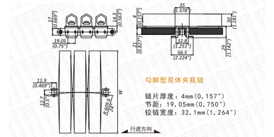 上圖為L(zhǎng)DGC1873T系列雙體鏈的結(jié)構(gòu)圖,圖紙已標(biāo)明本體尺寸。