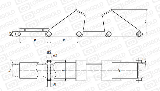 附件可配裝在每一個(gè)鏈節(jié)以上的鏈節(jié)間隔,如每偶數(shù)鏈節(jié)安裝,為了容易進(jìn)行保養(yǎng),安裝在外鏈節(jié)。