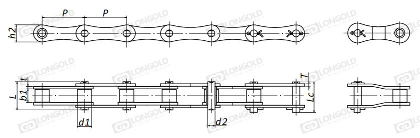 由短節(jié)距精密滾子鏈派生而來,節(jié)距是短節(jié)距滾子鏈條的兩倍,其它結(jié)構(gòu)形式和零件尺寸與短節(jié)距滾子鏈相同。
