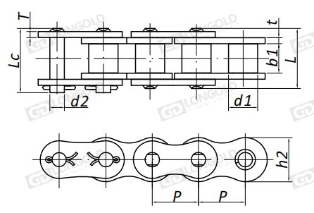 注:帶“*”表示鏈條為套筒鏈,滾子直徑中的d1代表套筒直徑;