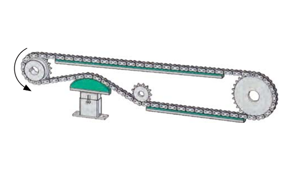 配置半圓型張緊高耐磨塑料,擁有自動機(jī)械張緊功能,能有調(diào)節(jié)鏈條的在運(yùn)行過程中的張緊度,使鏈條實(shí)現(xiàn)更加精準(zhǔn)高效的運(yùn)輸和傳動功能。