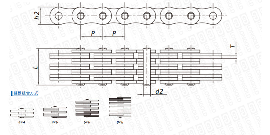 板式鏈條僅由鏈板和銷子構(gòu)成。鏈板被銷子連接起來,承受鏈板受到的張力。