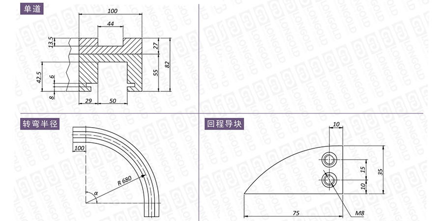 可根據(jù)客戶的需求,定制軌道的材質(zhì)、轉(zhuǎn)彎角度等,詳細請咨詢隆德技術(shù)人員。