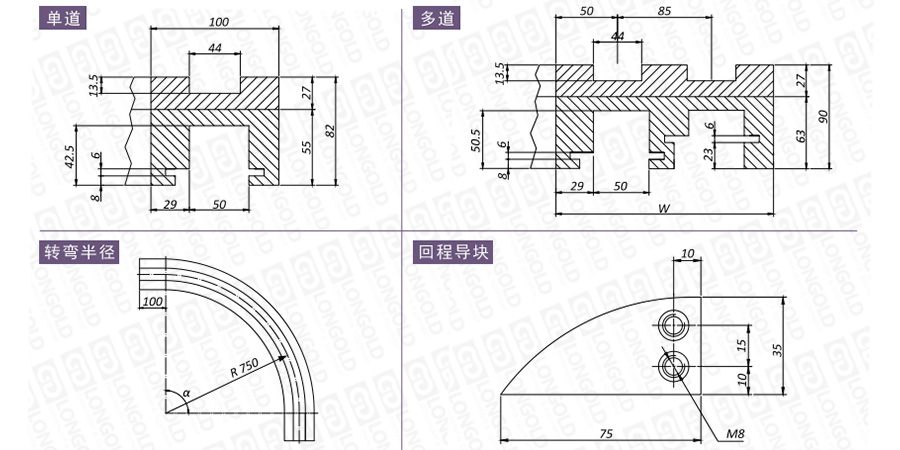 在選擇軌道時,需要考慮安裝尺寸、材質(zhì)性質(zhì)、轉(zhuǎn)彎角度等因素,如有需要,請咨詢隆德技術(shù)人員。