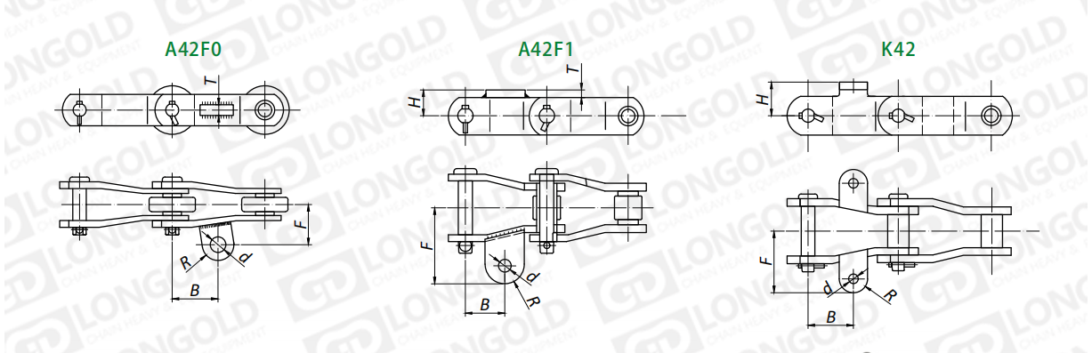 鏈板為直板型,帶A42附件或K42附件。