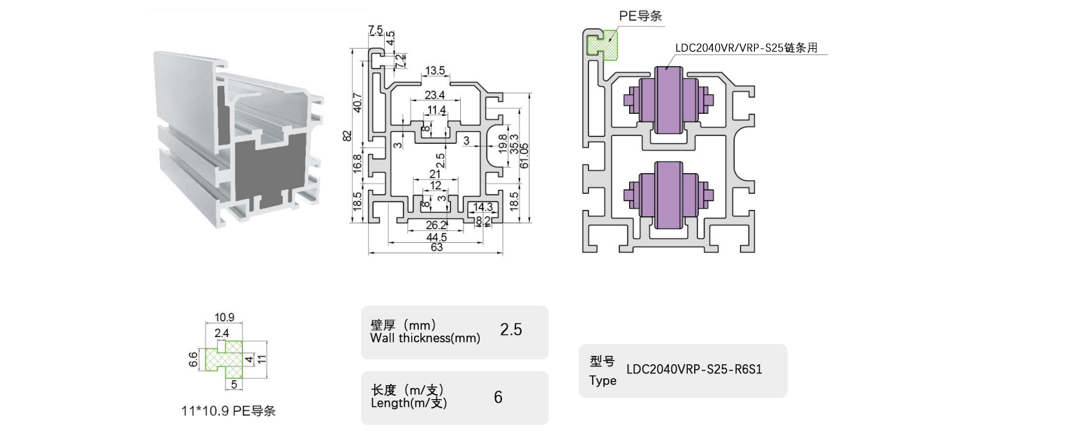 倍速鏈條用鋁制框架,用于滾子部采用工程塑料的倍速鏈條,包括帶蓋罩的倍速鏈條。在鋁制框架的輸送側小直徑滾子部安裝有鋼軌,可用于所有倍速鏈條。