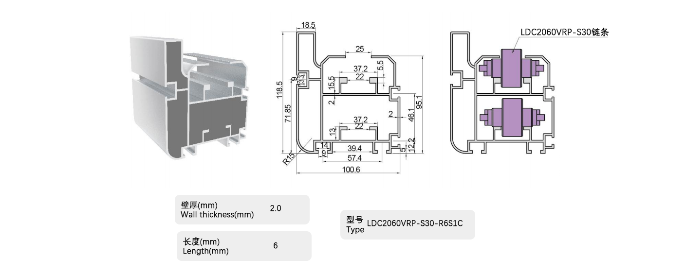在鋁制框架的輸送側(cè)小直徑滾子部安裝有鋼軌,可用于所有倍速鏈條。