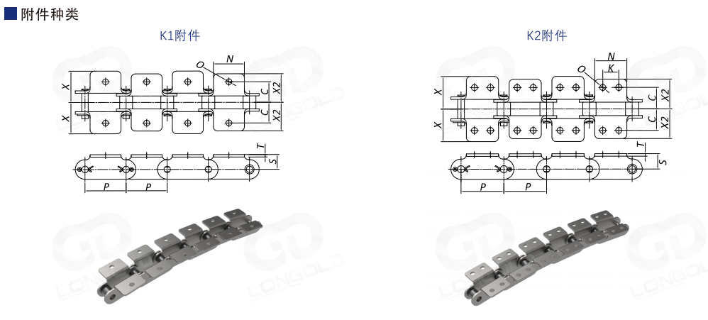側(cè)彎鏈條即可作為傳動(dòng)鏈?zhǔn)?,?可以安裝附件?于輸送。