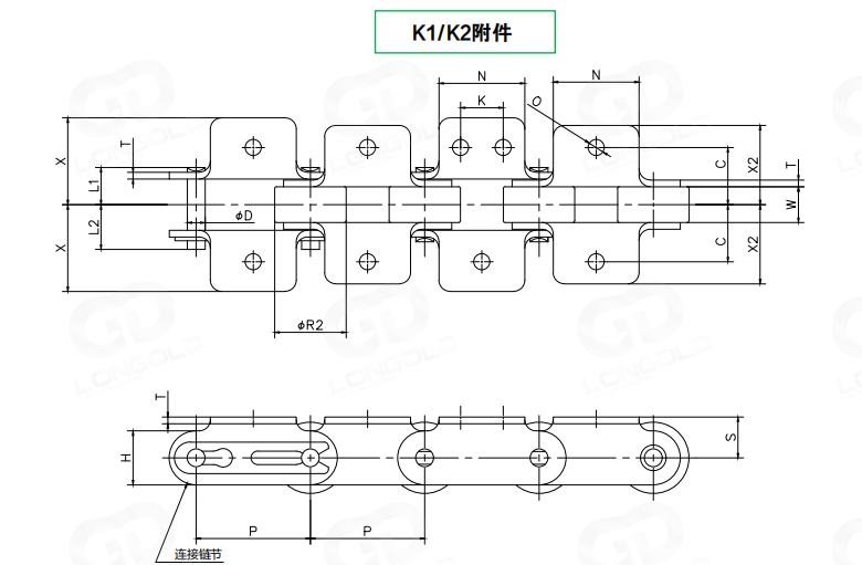 使用超級(jí)工程塑料制滾子,本體為不銹鋼鋼制的雙倍節(jié)距鏈條。在套筒和滾子之間可無(wú)加油使用。實(shí)現(xiàn)了輕量化和低噪音化。鏈條兩側(cè)加裝單孔彎板附件或者兩孔彎板附件,附件表示為K1或K2。
