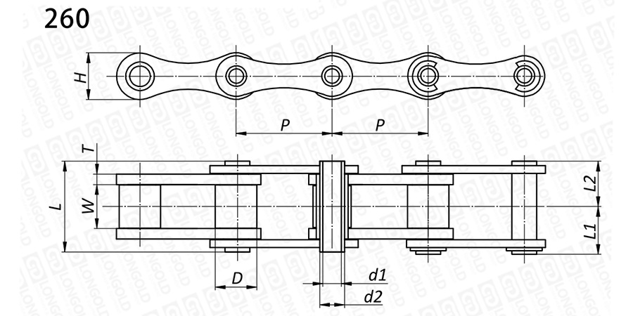 上圖為不銹鋼空心銷軸鏈260型的結(jié)構(gòu)圖。