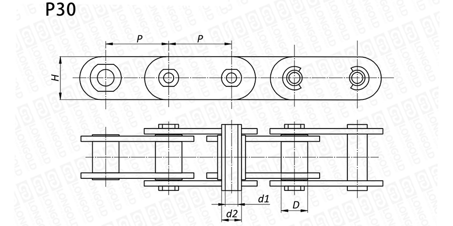 上圖為不銹鋼空心銷(xiāo)軸鏈P30型的結(jié)構(gòu)圖。