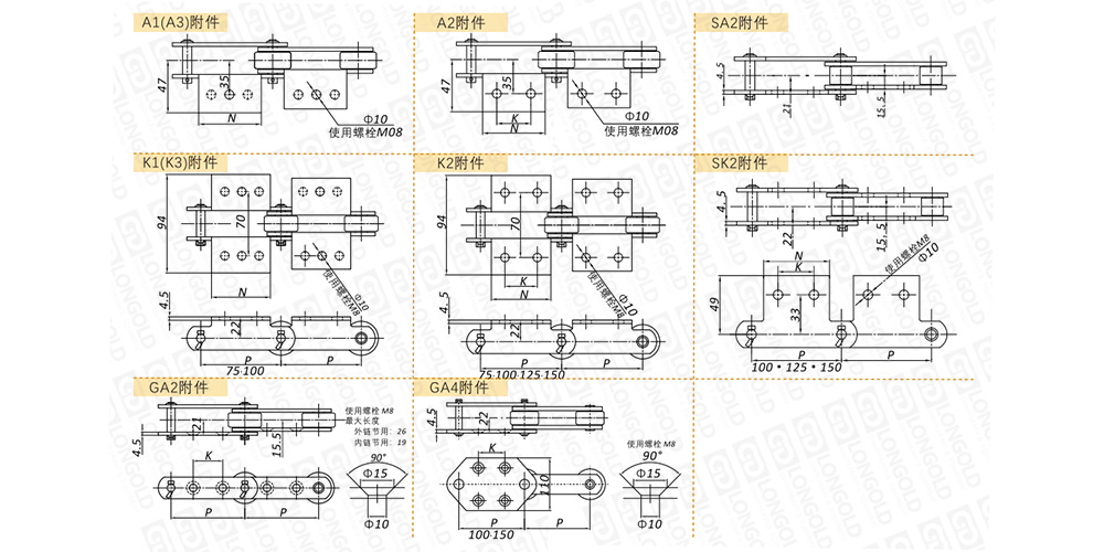 ■鏈條本體結(jié)構(gòu)及附見種類詳見如上圖