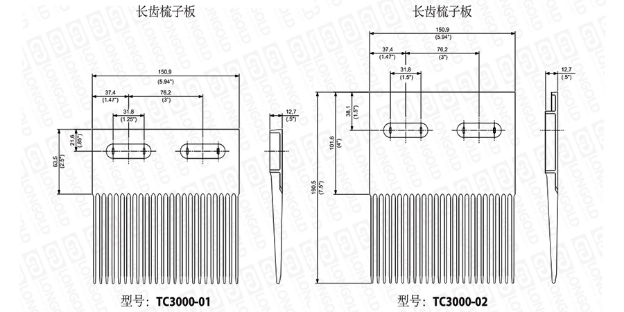 在選擇梳子板時(shí),需要考慮安裝尺寸,如有需要,請(qǐng)咨詢隆德技術(shù)人員。