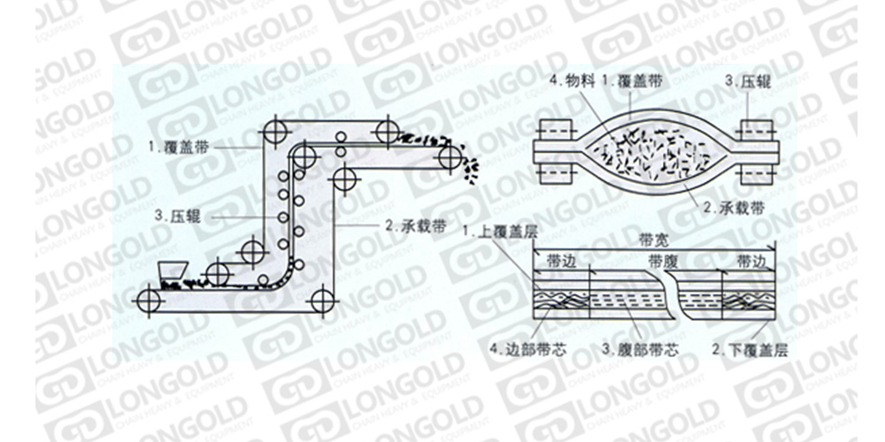 上圖為夾帶式輸送機覆蓋帶的結(jié)構(gòu)圖。