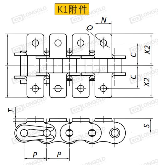 K1附件可配裝在每一個鏈節(jié)以上的鏈節(jié)間隔,如每偶數(shù)鏈節(jié)安裝,為了容易進(jìn)行保養(yǎng),安裝在外鏈節(jié)。