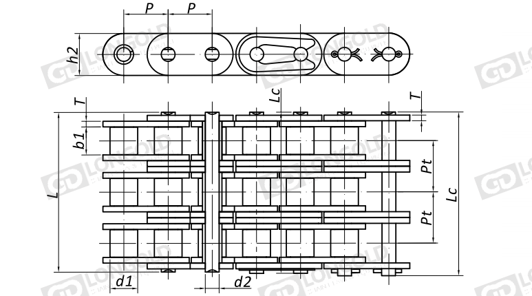 1.連接鏈節(jié)的銷軸形式,LDC35-LDC60為卡簧型 ,LDC80以上為開口銷型