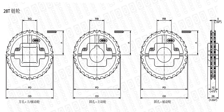1.圓孔鏈輪表示直徑,方孔鏈輪表示邊長。