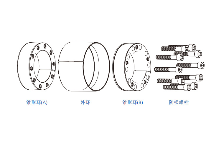 D系列脹緊套具有自動(dòng)定心、同軸度好的特征,輪轂內(nèi)孔和軸面均為直面,不用特意加工導(dǎo)向面,可節(jié)約大量加工時(shí)間和費(fèi)用。