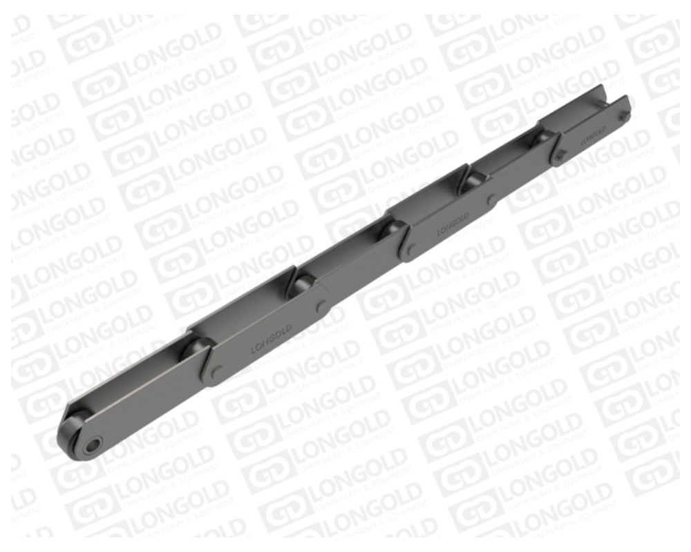 一種大型輸送鏈條,沒有滾子,因此被用于有拖輪的輸送機和推進鏈輸送機以及類似的裝有傳遞推力的輸送線上。通過附加一個可分離的滾車,這種鏈條可以輸送很重的負載。