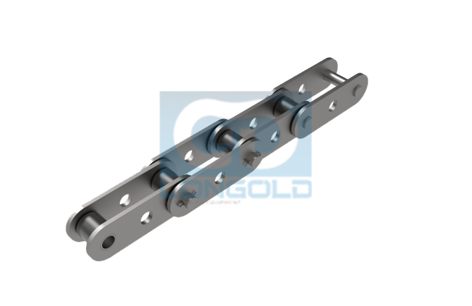 在雙倍節(jié)距鏈條(僅限小滾子型雙倍節(jié)距鏈條)兩側的鏈板上開孔的鏈條。又叫中孔鏈,可根據(jù)客戶需求非標定制中孔間隔和孔徑大小。