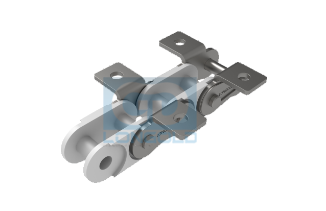 使用工程塑料制內(nèi)鏈節(jié)(聚醛樹脂),外鏈節(jié)采用SUS304材質(zhì)的鏈條,鏈條單側(cè)帶單孔彎板附件,附件表示為:A1。 具有免加油,長壽命和低噪音的特點(diǎn)。我們也可制造作為特殊品的B系列規(guī)格塑料組合鏈。