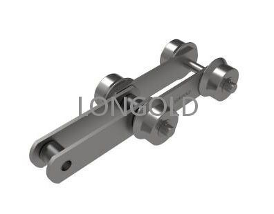 帶側置滾輪的汽車汽車生產線鏈條,側置滾輪能減少鏈條運動時的摩擦阻力,使鏈條能夠更加順暢地在軌道上運行。