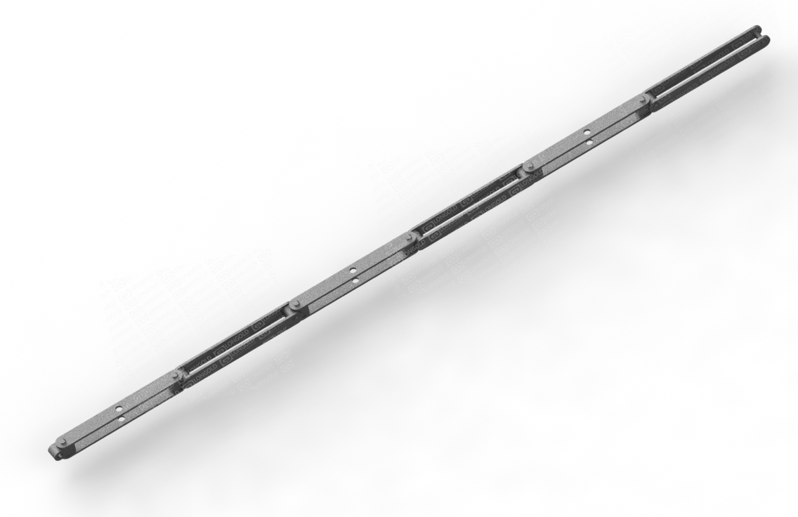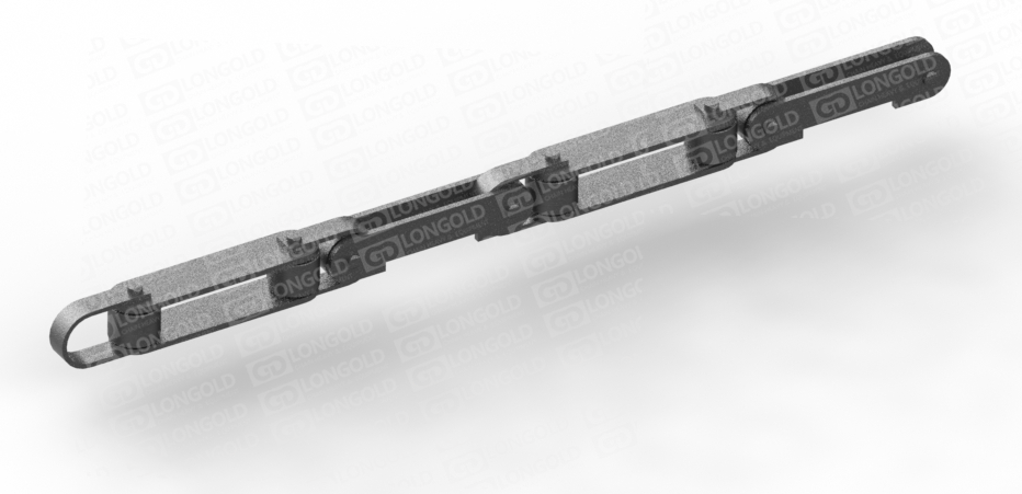 雙鉸接輸送鏈條設(shè)計(jì)用于能夠在空間范圍內(nèi)沿彎曲封閉軌道平穩(wěn)運(yùn)行的輸送系統(tǒng),常見于輕型封閉軌懸掛輸送機(jī)。它的結(jié)構(gòu)允許在多個(gè)方向上靈活移動(dòng),適用于復(fù)雜的輸送路線。