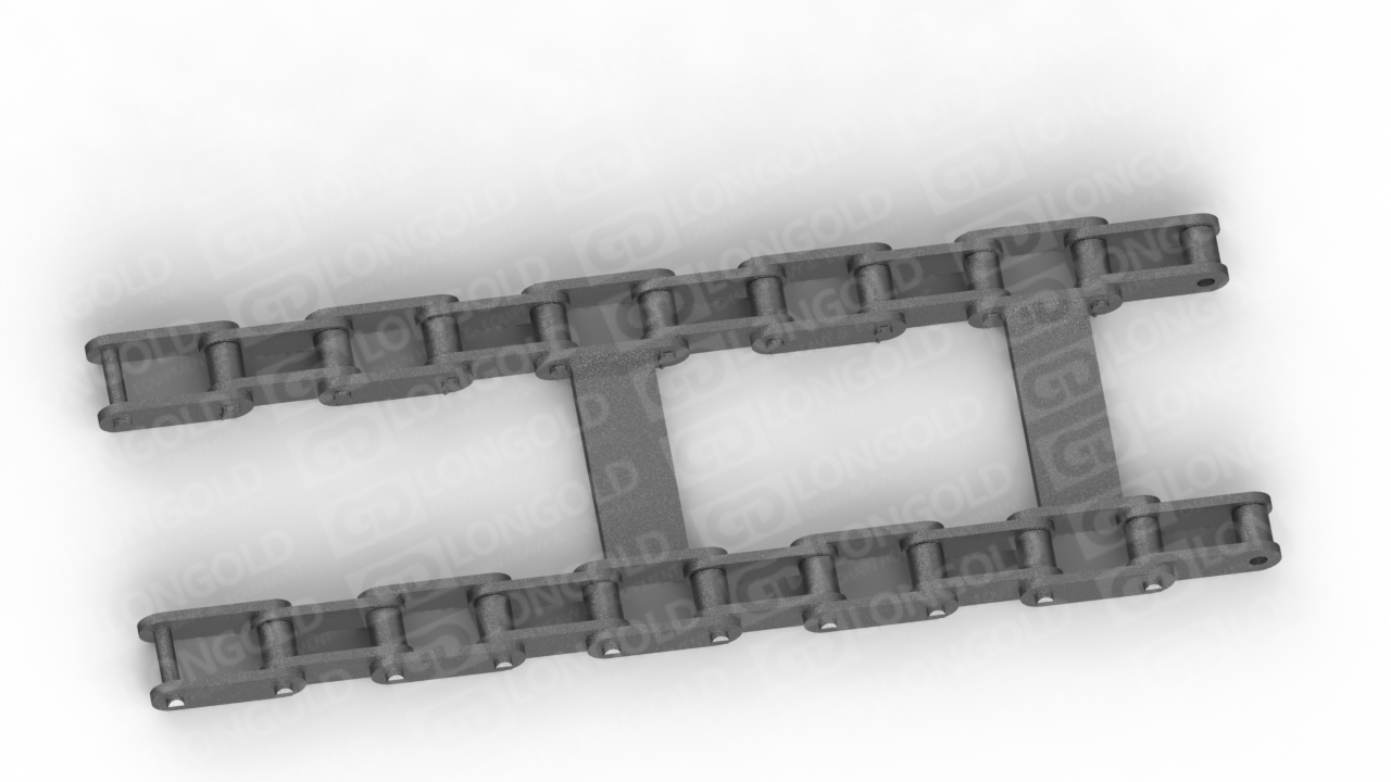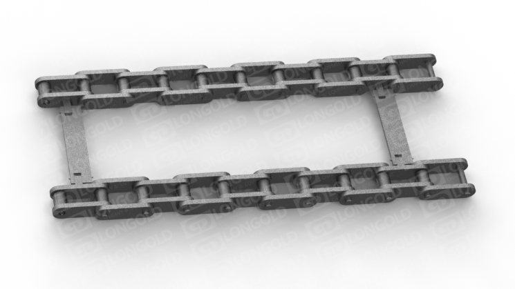 雙排鋪路機(jī)鏈條設(shè)計(jì)用于雙排鋪路機(jī),它們?cè)趦涉湕l之間裝配刮板,以提高物料的輸送效率和鏈條的耐用性。