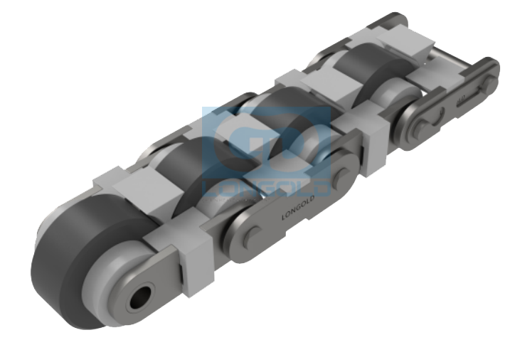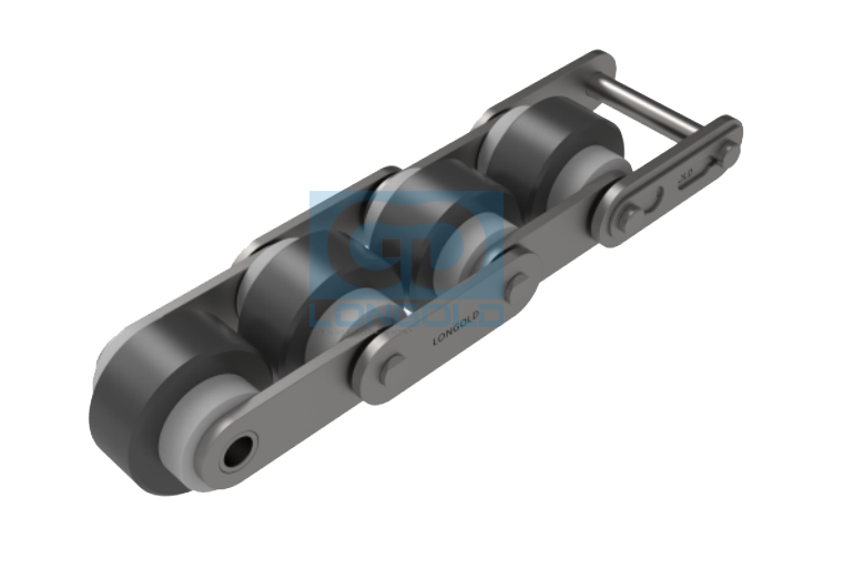 小口徑滾子和大口徑滾子組合的獨特構(gòu)造,可實現(xiàn)鏈條輸送物速度高于鏈條運行速度,一般可以達到2.5 倍或者3倍。