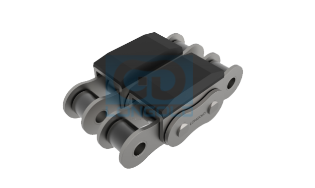 此類鏈條是在基于A、B系列輸送鏈條的外鏈節(jié)上加U形附板,在附板上粘上橡膠(如天然橡膠NR、硅樹脂橡膠SI等)可增加磨損能力,降低噪音,增加防震能力。用于輸送。