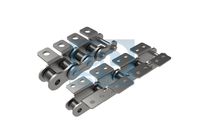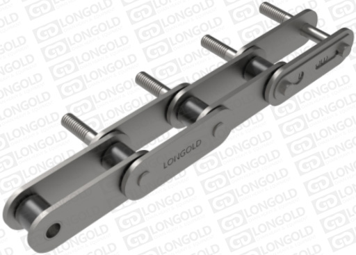 本體鏈條為A系列標(biāo)準(zhǔn)滾子鏈、B系列標(biāo)準(zhǔn)滾子鏈或者雙倍節(jié)距滾子鏈,鏈條上加裝各種非標(biāo)附件。