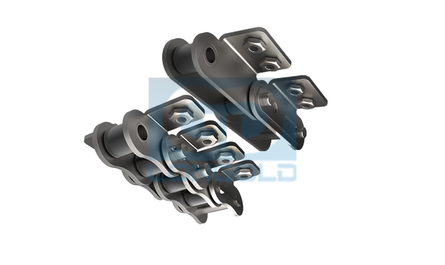帶LD180以上的大型尺寸的帶附件鏈條。主要附件形式有雙側(cè)帶直立單孔翼板附件,雙側(cè)帶單孔彎板附件,雙側(cè)帶雙孔彎板附件等,客戶可根據(jù)實(shí)際需要選擇合適的附件形式。