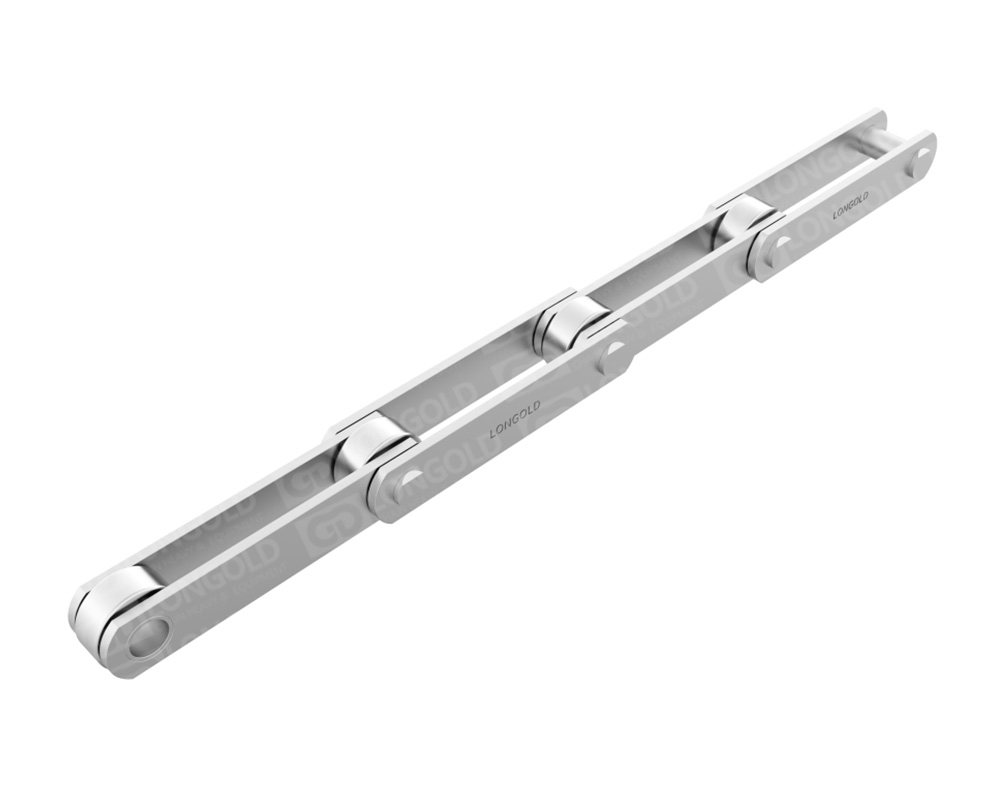 以輸送鏈為基本,安裝加寬的鏈板和摩擦阻力較小的大滾子,可以直接在鏈板上裝載重物的鏈條。采用相當(dāng)于SUS304不銹鋼材質(zhì)具有較高耐腐蝕性。