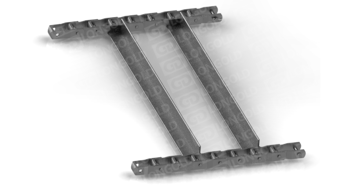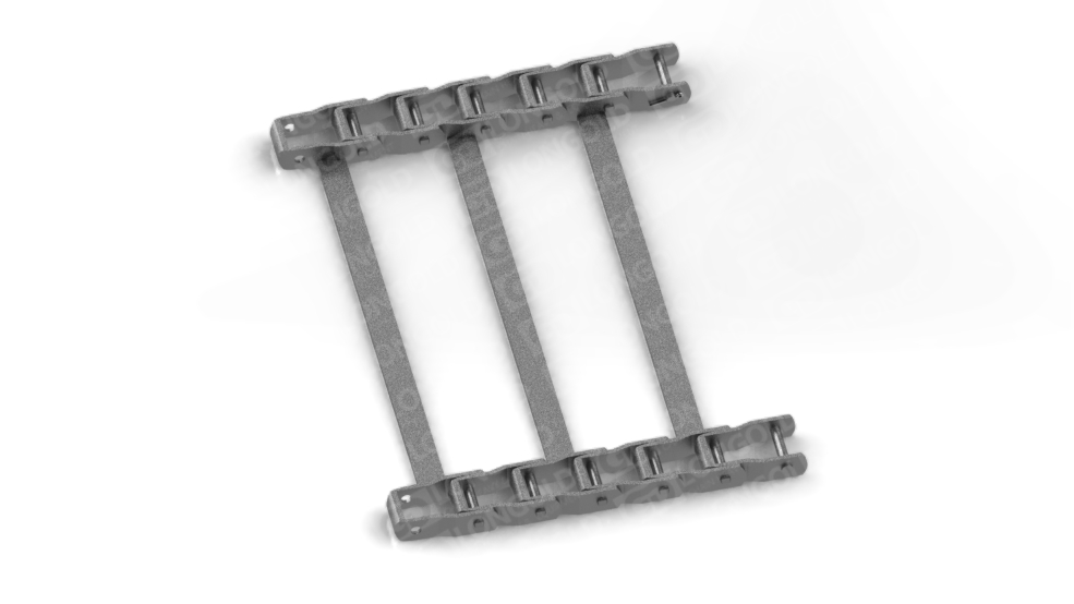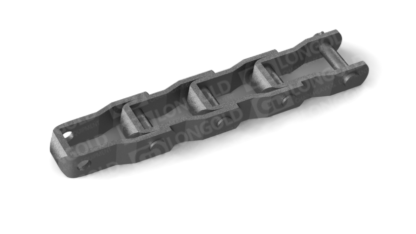 鋼制銷合鏈條的鏈節(jié)由可鍛鑄鐵鑄成并用鋼銷軸連接起來,沒有內(nèi)外鏈節(jié)之分。它們通常用于中低速、重載荷的工作環(huán)境,如灑飼料車、灑鹽車等物料的輸送。