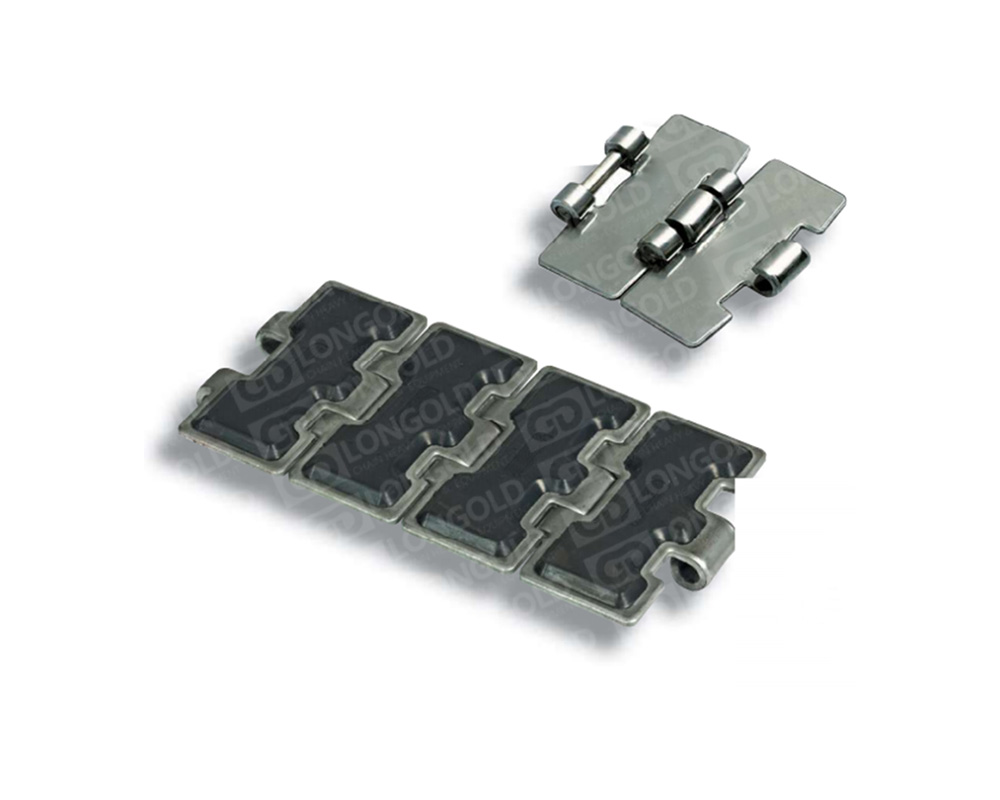 頂板鏈的鏈板通常比較寬大且厚實,其形狀多為平板狀。G815系列直行鏈是帶橡膠墊的金屬頂板鏈,橡膠具有最佳的耐磨性能和較長的使用壽命。硫化工藝最大限度的優(yōu)化了橡膠與鏈節(jié)件的結(jié)合