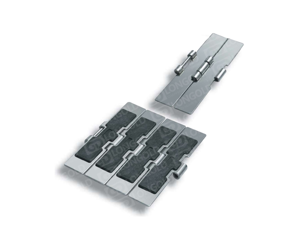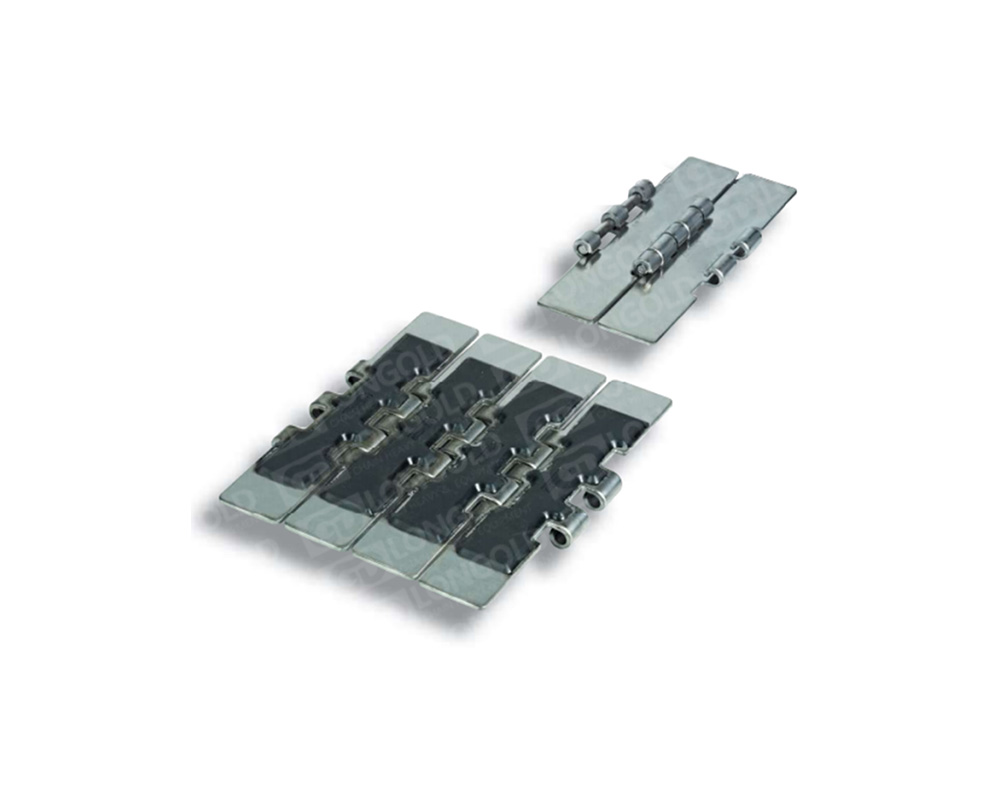 帶橡膠墊的金屬頂板鏈條設(shè)計用于減少噪音和振動,同時提供額外的牽引力和緩沖,以保護輸送的物品免受損傷。橡膠墊通常與鏈板頂部結(jié)合,以增強鏈條在運行過程中的性能和耐用性。