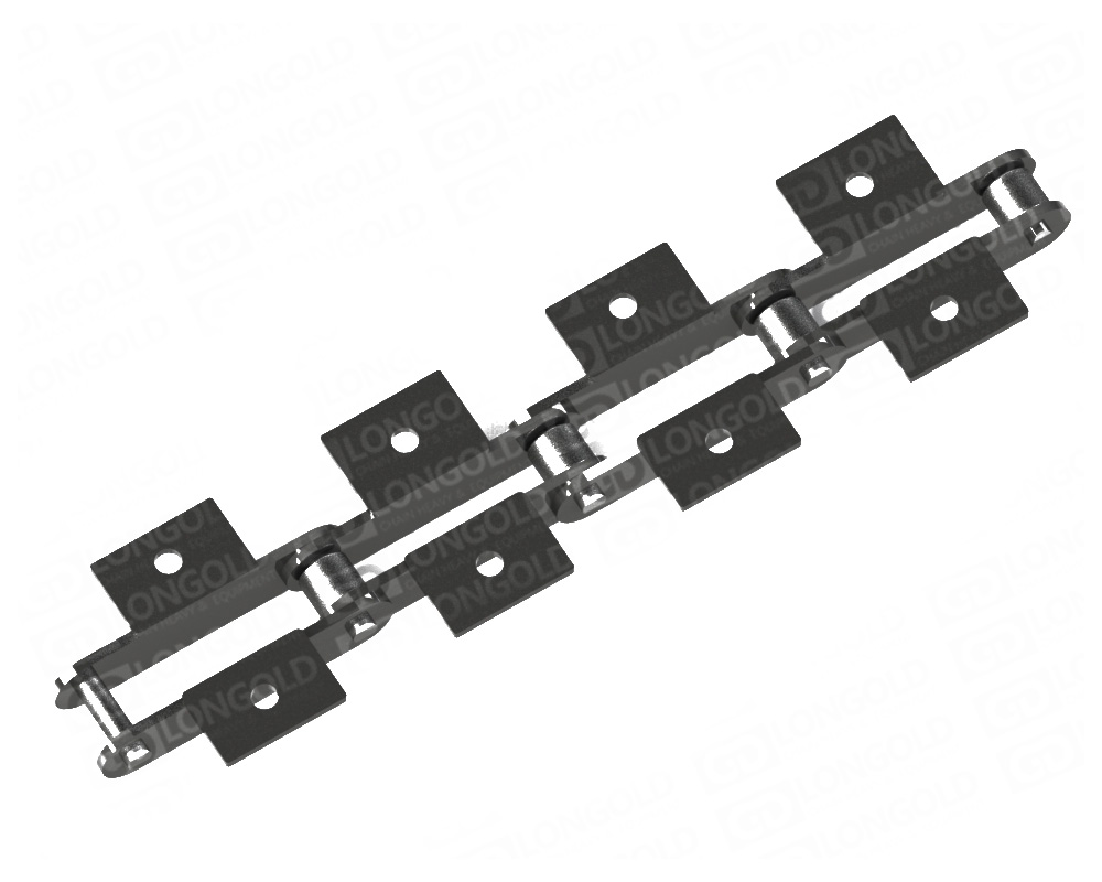 與GS規(guī)格相比,套筒~滾子間的磨損性能提高2倍,鏈銷~套筒間的磨損性能提高1.5倍,R滾子、F滾子的容許負荷提高1.3倍??墒褂脺囟拳h(huán)境: -20°C~400°C。英制尺寸系列有多個尺寸,不同尺寸有著不同的抗拉強度,能夠適應(yīng)各類輸送環(huán)境。根據(jù)不同附件有著不同的輸送方式。