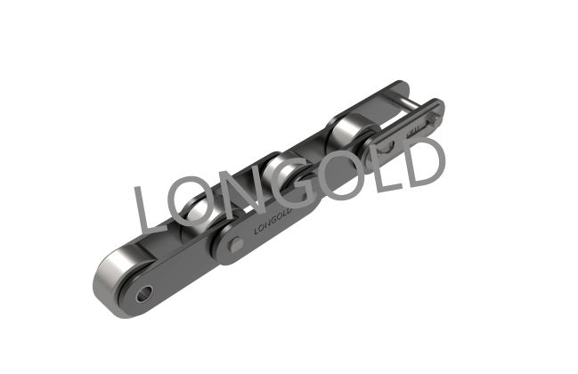 與短節(jié)距A系列滾?鏈條相?,鏈條節(jié)距增加1倍(稱為雙倍節(jié)距),鏈板形狀為直板形,鏈條的兩側(cè)帶有彎板附件,且附件上有一個(gè)螺孔的形式。依照J(rèn)IS,ISO和ASME標(biāo)準(zhǔn)。