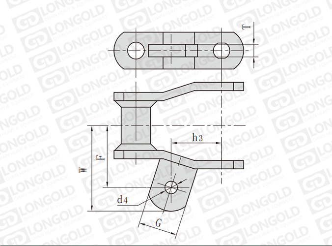 焊接結(jié)構(gòu)彎板鏈條是一種特殊結(jié)構(gòu)的鏈條,其鏈板采用彎板形式,并且通過焊接工藝將各個部件連接在一起。鏈條帶A22附件,這些附件是帶有安裝孔的附板,平行于鏈節(jié)節(jié)距中心線安裝在鏈節(jié)的一側(cè)鏈板彎部上。