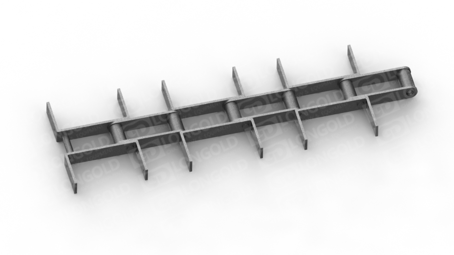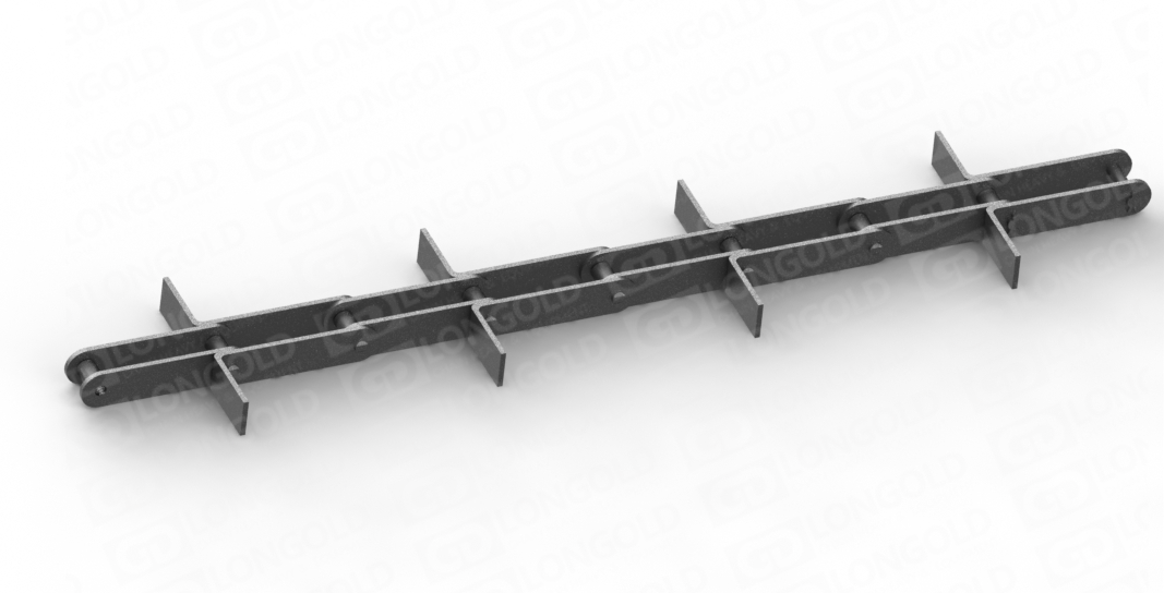 刮板輸送鏈通常由一系列剛性的刮板和鏈條組成,刮板固定在鏈條上,用于在料槽內(nèi)移動(dòng)物料。這種輸送鏈廣泛應(yīng)用于礦業(yè)、建筑、食品加工和制造業(yè)等領(lǐng)域。