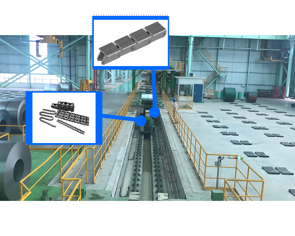 鋼鐵是現(xiàn)代工業(yè)的基礎(chǔ)材料,廣泛應(yīng)用于建筑、機械、汽車、航空航天、能源等領(lǐng)域。鋼鐵冶金行業(yè)的發(fā)展水平直接影響著一個國家的工業(yè)化進程和經(jīng)濟實力。鋼鐵冶金行業(yè)是一個龐大而復(fù)雜的產(chǎn)業(yè),它涉及到從鐵礦石開采到鋼鐵產(chǎn)品制造的多個環(huán)節(jié)。隆德生產(chǎn)的鋼鐵冶金用的鏈條的鏈板設(shè)計得厚實且堅固,可以承受沉重的鋼鐵物料,同時鏈板之間采用高強度銷軸鏈接,鏈條整體能夠承受高溫線材的熱量。