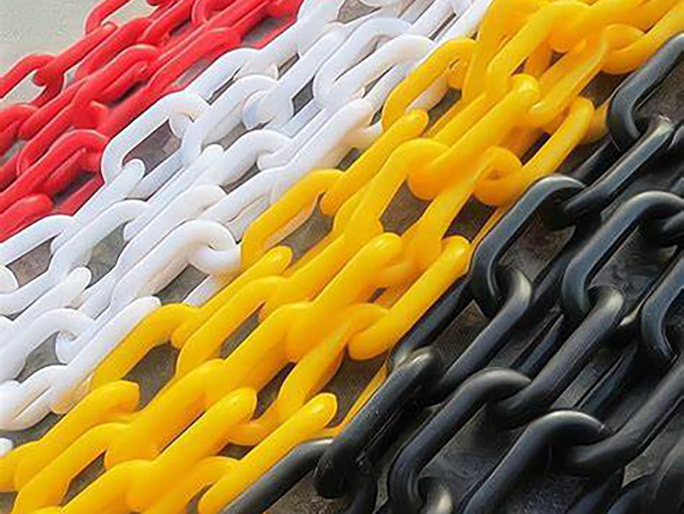 塑料包覆層通常采用具有良好耐腐蝕性和一定強(qiáng)度的工程塑料,如尼龍(PA)、聚氯乙烯(PVC)等,一般通過(guò)注塑工藝將塑料緊密地包覆在鋼質(zhì)圓環(huán)鏈的表面,根據(jù)所使用的工程塑料的不同,就可以獲得不同顏色的塑鋼防護(hù)鏈。