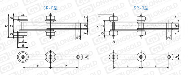 使用R型的側(cè)置滾子時(shí),可使鏈條具備倍速功能。