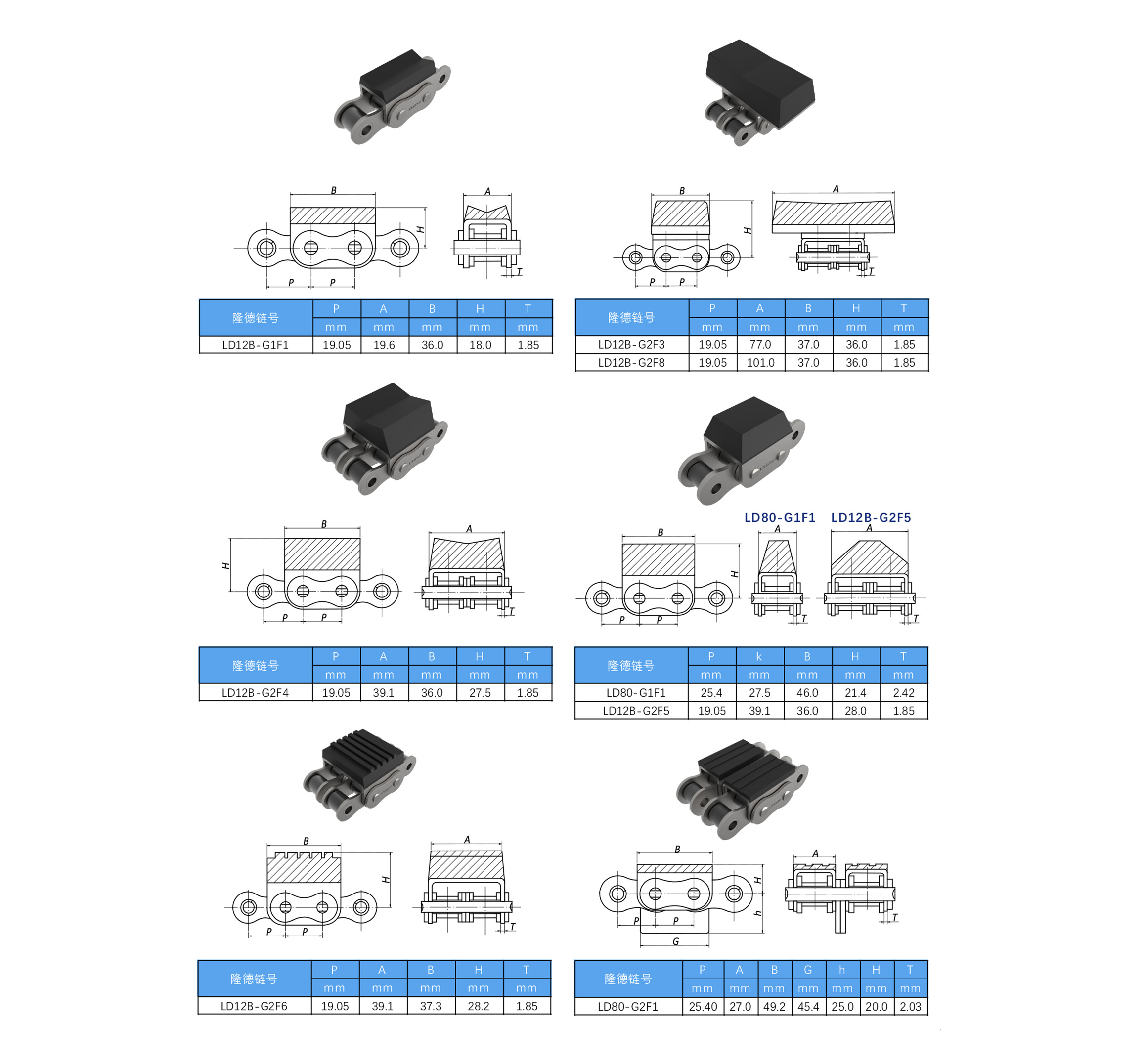 本體鏈條可為A系列或者B系列單雙排直板或者"∞"字板鏈條。
