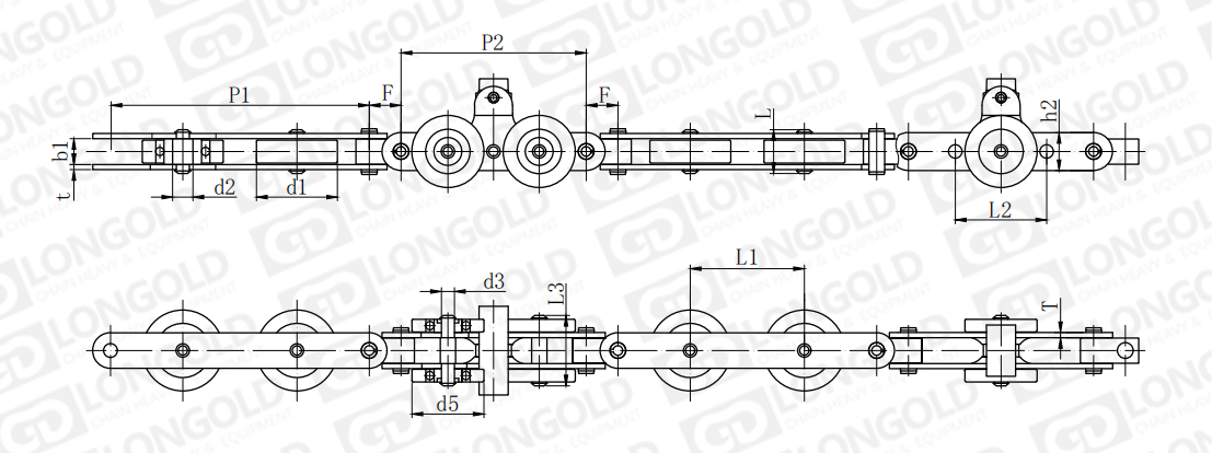 附件是為了將夾具安裝在鏈條上的零部件??筛鶕?jù)客戶要求設(shè)定安裝間隔。